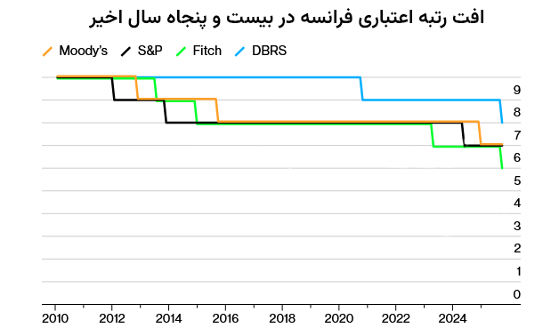 رتبه اعتباری فرانسه برای دومین بار در یک هفته کاهش یافت؛ رخدادی که نگرانیها درباره وضعیت مالی و بیثباتی سیاسی این کشور را تشدید کرده است.