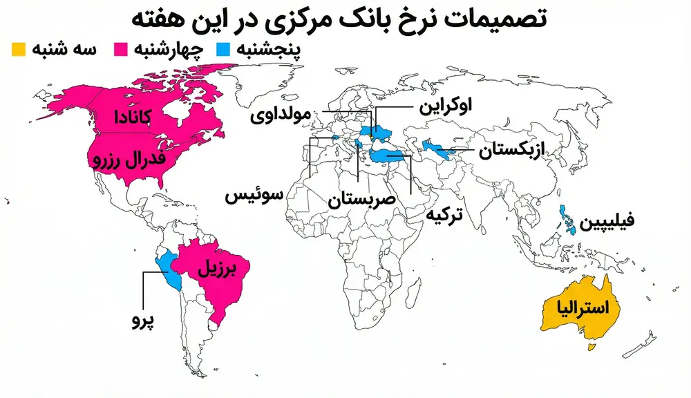 بانک ملی سوئیس در شرایطی که فشار ناشی از کاهش تورم و قدرت فرانک ادامه دارد احتمالاً نرخ بهره را در سطح صفر حفظ میکند. در ترکیه، امکان کاهش تا ۱۵۰ واحد پایه مطرح است زیرا رشد اقتصادی بیش از انتظار کاهش یافته و تورم پایینتر از برآوردها بوده است. صربستان ممکن است پنجمین فصل بدون تغییر نرخ را رقم بزند و اوکراین نیز پس از پنج ماه ثبات، تصمیم جدید خود را اعلام خواهد کرد.
