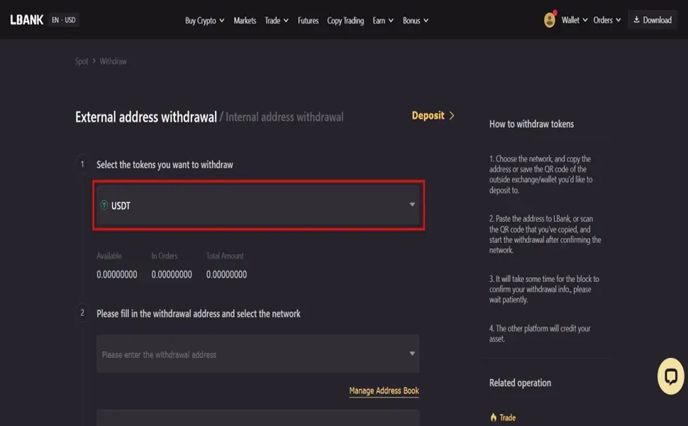 آموزش برداشت رمز ارز از صرافی ال بانک (Lbank) قدم به قدم